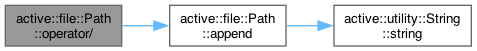 | Path | operator/ (const utility::String &toAppend) const |